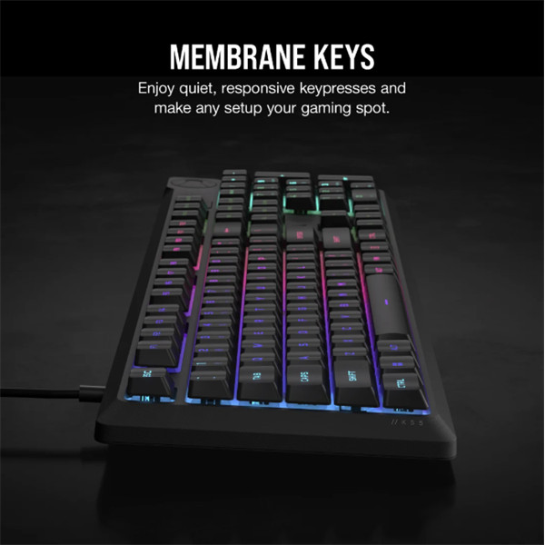 CORSAIR Vezetékes Billentyűzet Gaming, K55 CORE RGB, Médiavezérlő gombok, Cseppálló, US, fekete