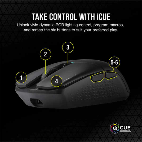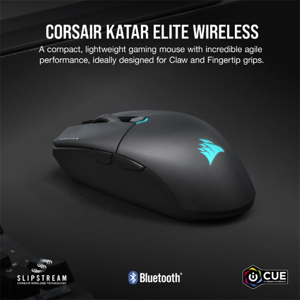 CORSAIR Vezetékes/Vezeték Nélküli Egér Gaming, KATAR ELITE, 6 programozható gomb, RGB Világítás, 26000dpi, fekete