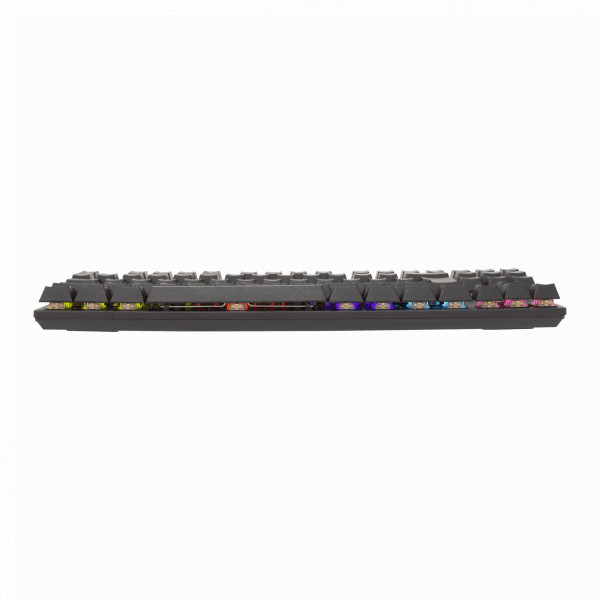 Number of keys: 88 Switch type: Mechanical - BLUE Anti-Ghosting: 25 keys Color: Black Interface: USB 2.0 Cable length (m): 1.5 Available layouts: HU Weight (g): 650 Key layout: Tenkeyless Lifetime: Over 50 M press Key travel distance: 4 mm +/- 0.3 mm Illumination: LED - rainbow effect - 12 modes Material: Plastic cover with metal base; Plastic bottom Additional rising legs: Yes Braided cable: No Dimensions (mm): 352x135x35